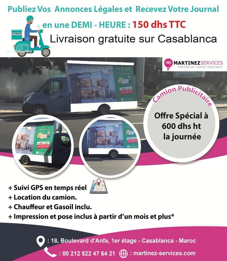 commerce de Casablanca sous le numéro 731258.