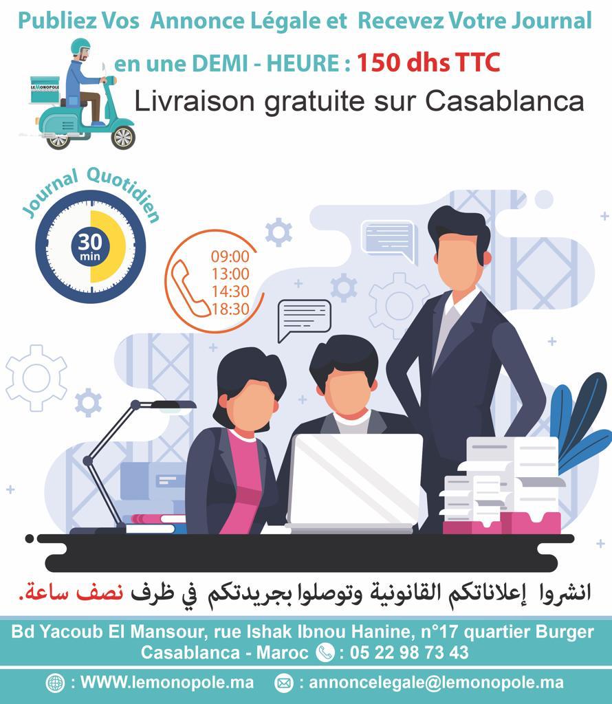 Commerce d’Oujda le 03 01 2020 sous n°48.