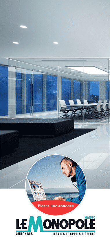 Journal le monopole vous permet, grâce à sa nouvelle plateforme de publier vos annonces en quelques clics sur nos quotidiens (journal en une heure chrono) dans tout le Maroc Annonce légale a Casablanca, Rabat, Oujda, Marrakech, Agadir, Tanger, Laayoune, Fés, Meknès, Salé, Tétouan, Safi, Beni Mellal, Taza, Nador, kénitra, Berkane, mohammedia....Cette nouvelle plateforme, plus ergonomique et simple d’utilisation, vous offre la possibilité de recevoir votre journal par email en format PDF ou en format papier et de fixer (vos) date(s) de parution. Vous n’avez plus besoin de vous déplacer (Paiement sécurisé par carte bancaire) ou par versement, avec un tarif forfaitaire de 150.00 DHS TTC quel que soit le nombre de lignes.